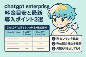 この記事では、ChatGPT Enterpriseの全機能や特徴、導入メリットを2025年最新情報で網羅的に紹介します。比較表や最新事例も交え、他プランとの違いや活用イメージまで具体的に解説。企業担当者が知りたい「できること」がすぐに分かります。